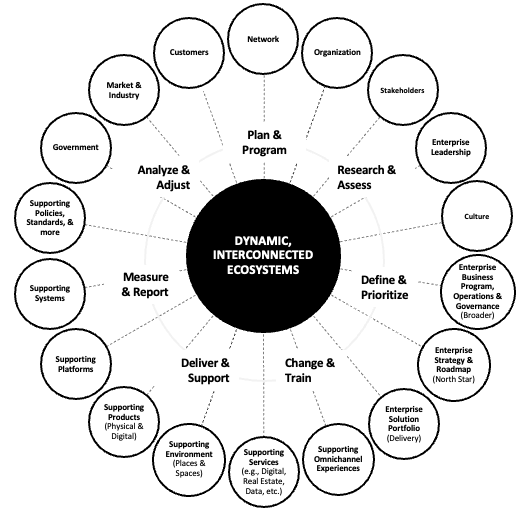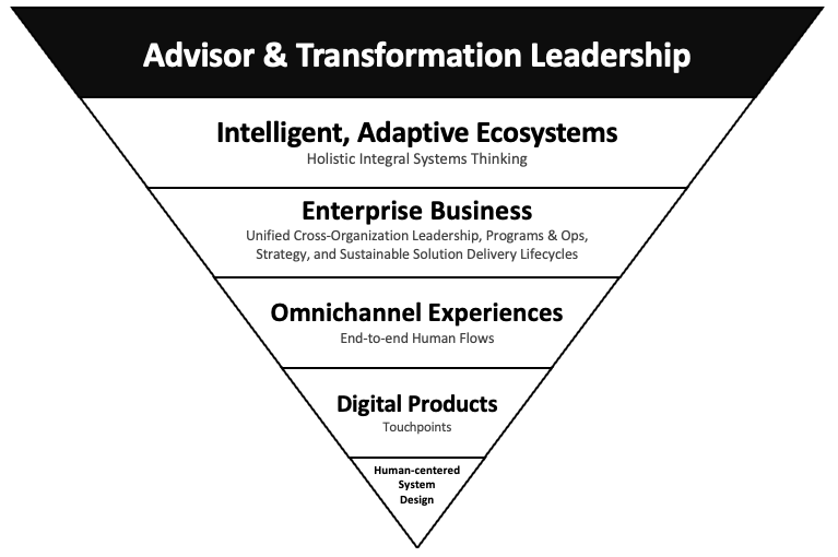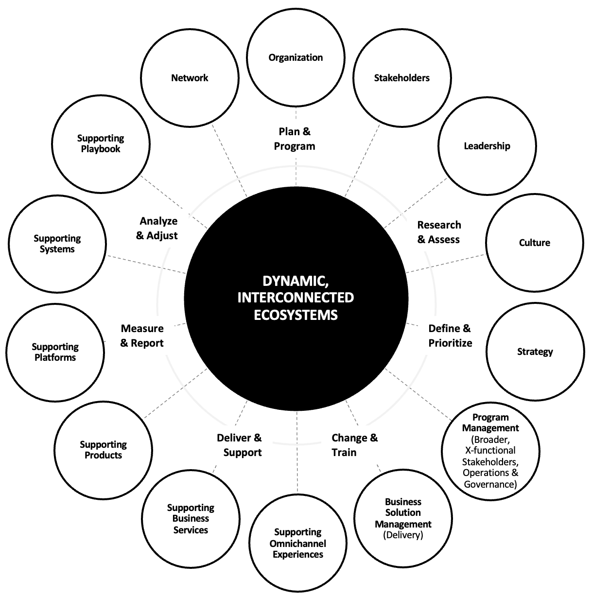• Ecosystem Interconnectivity: Bridging leadership, strategy, operations, solutions delivery, and culture to drive systemic value across business units